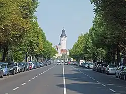 Krátce před Semmelweisstraße se silnice mírně zatáčí 5 stupňů doleva. Podle starších plánů měl být na koncích ulic vidět Památník bitvy národů a věž Nové radnice. To se ale nepodařilo zrealizovat. Radniční věž je tak vidět na jedné straně až k Semmelweisstraße a na druhé věž bývalé sovětského výstavního pavilonu s rudou hvězdou a teprve za zatáčkou Památník bitvy národů.