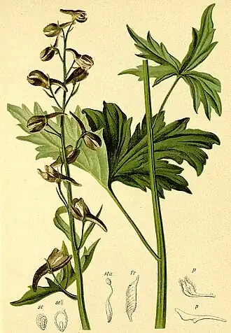 - ↑ KAŠŠÁK, Pavol. Delphinium elatum [online]. Zahradnická fakulta Mendelovy univerzity, Lednice [cit. 2017-11-29]. Dostupné online.