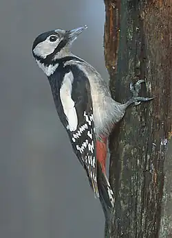 - ↑ a b GAINS, David. Great Spotted Woodpecker [online]. [cit. 2010-01-12]. Dostupné online. (anglicky)