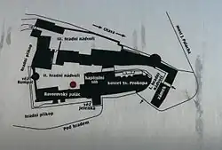Jižní stranu druhého nádvoří tvoří obytný palác komturů z 15.-16. století, západní hradba s věží Rumpál a v severozápadním rohu románská budova bývalého purkrabství s hrázděným štítem.