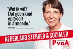 Jetta Klijnsma (* 1957) na volebním plakátu PvdA (2014)