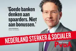 Jeroen Dijsselbloem na volebním plakátu PvdA (2014)
