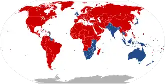 V současné době[kdy?] je levostranný provoz v 76 zemích, teritoriích a závislých územích, pravostranný provoz v 163 zemích .