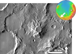 - ↑ a b c d STEWART, Emily M.; HEAD, James W. Ancient Martian volcanoes in the Aeolis region: New evidence from MOLA data. Journal of Geophysical Research. 1 August 2001, s. 17505. doi:10.1029/2000JE001322.