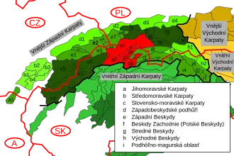 | Podřazené jednotky | Kysucké Beskydy, Oravské Beskydy, Beskid Żywiecki, Kysucká vrchovina, Oravská Magura, Oravská vrchovina, Podbeskydská brázda, Podbeskydská vrchovina |