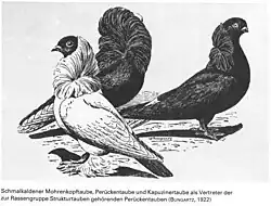 - ↑ a b c TUREČEK, Václav, a kolektiv. Holubářství. Praha: Státní zemědělské nakladatelství, 1985. 156 s. Kapitola Holubi strukturoví, s. 112.
