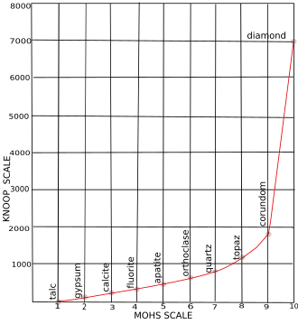 Knoopova stupnice je mírou tvrdosti určované zkouškou podle Fredericka Knoopa (1878–1943), amerického fyzika, metalurga a výrobce nástrojů, kterou v roce 1939 se spolupracovníky vypracoval v americkém Národním úřadu pro standardy (NIST) [5][6] jako alternativu zkoušky tvrdosti podle Vickerse, užívané především pro kovy. Knoopova zkouška tvrdosti je statická zkouška mikrotvrdosti, používaná zejména pro velmi křehké materiály, velmi malé vzorky nebo pro tenké plechy, kde může být pro účely zkoušky proveden pouze nehluboký vtisk. Kromě krystalografie, mineralogie nebo při použití kovů tak nachází uplatnění např. v keramickém průmyslu či zubní protetice. Principem je vtlačování plochého pyramidálního diamantového hrotu do leštěného povrchu zkoušeného materiálu známým zatížením po stanovenou dobu. Výsledný vtisk se měří pomocí mikroskopu. Výsledky se udávají v číslech odpovídajících kg síly na mm⁻²[pozn. 1] a pro běžně tvrdé materiály se hodnoty obvykle pohybují v rozmezí hodnot 100–1000 HK.[6]