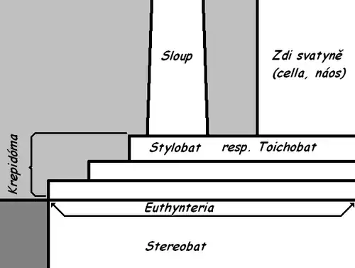 Tento stupeň bývá pro zdůraznění o něco vyšší a s celou krepidómou bývá směrem ke středu chrámu nepatrně vypouklý, aby se rozměry stavby opticky zvětšily. Nazývá se tak, pokud u jeho okraje stojí sloupořadí. Poslední stupeň, na jehož okraji stojí pouze zdi, se nazývá toichobat.