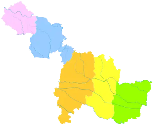 Městská prefektura Su-čou se člení na pět celků okresní úrovně, a sice jeden městský obvod a čtyři okresy.