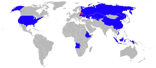 Sovětský svaz- Sovětské letectvo a Vojska protivzdušné obrany. Přešly na různé nástupnické země v roce 1991.