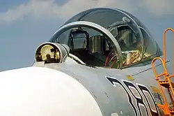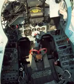 Pilotní kabina je posunuta dopředu a má zaoblený tvar. Kryt je vyroben z organického skla. Tvoří ji dvě části – přední zaoblená a zadní, která se otevírá směrem dozadu, proti směru letu. Kabina je přetlaková. Na předním rámu zadní části krytu jsou tři zrcátka. Pilot sedí ve vystřelovací sedačce K-36, která umožňuje katapultáž při nulové rychlosti a výšce. Přetížení se pohybuje kolem 20G. Uprostřed nad palubní deskou je čelní průhledový indikátor (HUD), který zobrazuje údaje z palubního radiolokátoru a optoelektronického lokátoru.
