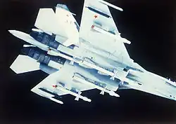 - ↑ [Photo] Ukrainian Air Force Su-27 Flanker heavily armed for Combat Air Patrol [online]. 3 March 2014 [cit. 2015-04-24]. Dostupné v archivu pořízeném z originálu dne 6 May 2015.