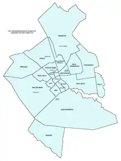 Město Subotica je rozděleno na místní části, které se dále dělí na městské a příměstské. Zahrnují části města s počtem obyvatel od 2 000 do 10 500 u městských, a 600 do 9 000 u příměstských. Městské části jsou v Subotici následující: