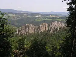 - ↑ a b MIKULÁŠ, Radek; CÍLEK, Václav; ADAMOVIČ, Jiří. Pískovcový fenomén Českého ráje. Turnov: ZO ČSOP Křižánky, 2006. ISBN 80-902751-5-X. Kapitola Geologicko-Geomorfologický popis skalních měst Českého ráje, s. 256–257.