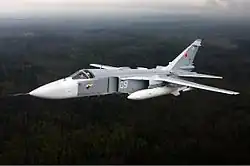 Suchoj Su-24 (kód NATO „Fencer“) je nadzvukový, dvoumístný, dvoumotorový hornoplošný taktický bombardérměnitelnou geometrií křídel[4] určený pro boj za každého počasí, vyvinutý v SSSR.