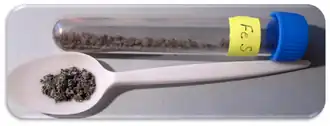 Všechny neušlechtilé kovy umožňují reakci síry s kovem, za vzniku sulfidu. Na příklad třeba železo (Fe), za vzniku sulfidu železnatého: