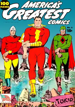 Oba trendy se zkombinovaly a v roce 1931 vznikl v Japonsku první maskovaný hrdina se superschopnostmi, Ōgon Bat (Zlatý netopýr). Dalším byl Mandrake the Magician (1934). V roce 1938 vytvořili američtí autoři Jerry Siegel a Joe Shuster postavu Supermana. Následovali postavy Batman, Captain Marvel, Wonder Woman, Flash a roku 1941 Captain America. Tím začala tzv. zlatá éra komiksu v době druhé světové války se znaky patriotismu. Po ztrátě nepřátel a vlivem cenzury došlo k úpadku komiksu. Postavy superhrdinů si brzy našly cestu na filmová plátna. Zlomem ve vnímání komiksových superhrdinů byl nástup Stana Leeho, který přinesl do boje superhrdinů běžný lidský faktor, růst postavy a její vývin a tím přiblížil superhrdiny čtenářům.
