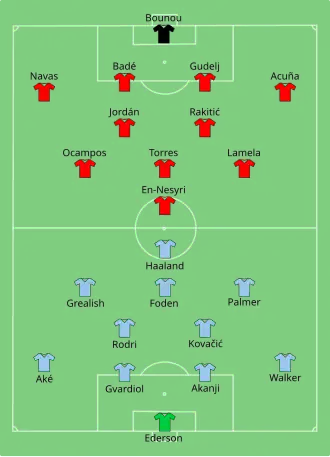 - ↑ a b Full Time Report Final – Manchester City v Sevilla [online]. Union of European Football Associations, 16 August 2023 [cit. 2023-08-16]. Dostupné online.