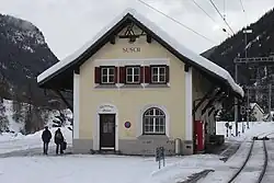 Susch leží na železniční trati Bever – Scuol-Tarasp, vedoucí údolím Engadin. Trať provozuje Rhétská dráha. V obci se nachází stejnojmenná vlaková stanice.