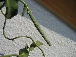 Rozkvetlé květy lákají vůní (nebo spíše pachem) létající hmyz, nejčastěji mouchy, aby vlétly do korunní trubky. Ta je zevnitř porostlá tvrdými chloupky skloněnými dolů, takže moucha po nich může sestupovat jen dolů a nemůže se vrátit nahoru a odlétnout. Při sestupu do báze trubky je navedena na prašníky, kde na své chlupaté tělo nabere pyl a společně s přineseným pylem opylí bliznu a část domácího pylu později odnese do jiného květu. V květu moucha musí čekat až květ počne vadnou a chloupky bránící v odchodu se sklopí, po tu dobu se živí nektarem. Plodem jsou míšky, nejčastěji vřetenovitého tvaru, které po dozrání prasknou a vítr rozptýlí ochmýřená semena.[4][5][6]