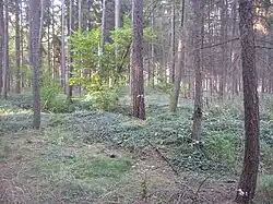 Barvínkem porostlé stopy zdí jsou v terénu patrné do výše několika decimetrů až jednoho metru.