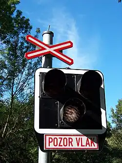 Obrázky, zvuky či videa k tématu Světelné přejezdové zařízení na Wikimedia Commons