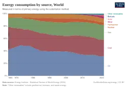 - ↑ Global primary energy consumption by source. Our World in Data [online]. [cit. 2023-10-28]. Dostupné online.