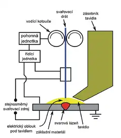 - ↑ a b c d e Svařování pod tavidlem (SAW) [online]. Svarinfo, 2010-01-28 [cit. 2011-05-27]. Dostupné online.