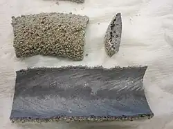 - aglomerovaná tavidla – se vyrábějí jako prášková, ale s keramickým pojivem; vysoká teplota výroby zabraňuje možnosti přidávání dezoxidačních a legujících prvků; mají zvýšenou citlivost k navlhání;[27][36][35]