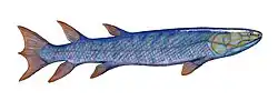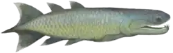 Devonský Osteolepis s tělem pokrytým kosmoidními šupinami.