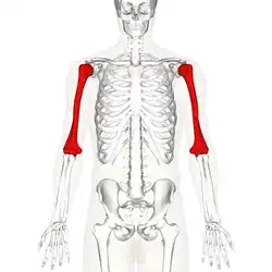 Horní končetina člověka (vlastně modifikovaná prsní ploutev) je k pletenci (lopatce a klíční kosti) napojena jedinou (pažní) kostí, humerem.