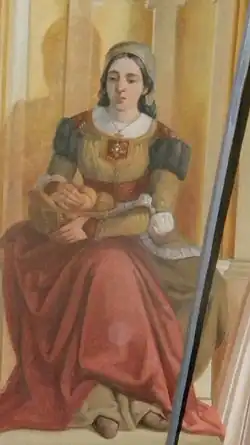 AtributyZnázorněna jako šlechtična s modelem kostela, listinou nebo růží, či rozdávající almužnu