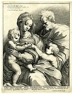 Raffael Santi: Svatá rodina, svatí Jan Křtitel, Alžběta a Zachariáš -