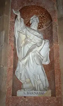 Svatý Barnabáš (?–61) byl raně křesťanský konvertita, jeden z prvních učedníků v Jeruzalémě.[1] Společně se svatým Pavlem se věnoval misionářským cestám na pohanská území – např. Antiochie, Malá Asie.[2] Zúčastnili se také koncilu v Jeruzalémě, kde obhájili názor, že nežidovští konvertité nemusí přijmout židovské tradice (zejména obřízku), aby došli spásy.
