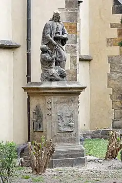 Socha Ferdinanda Maxmiliána Brokoffa zobrazuje svatého Jana Nepomuckého v méně obvyklé podobě jako almužníka. Světec nemá své obvyklé atributy: pět hvězd a krucifix.