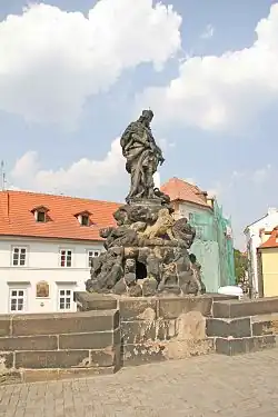 • Socha sv. Víta mezi lvy, pískovec, barokní dílo Ferdinand Maxmilián Brokoff 1708, Praha, Karlův most
