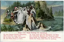 Se skalním útvarem se pojí legenda o Hansovi Heilingovi a zkamenělém svatebním průvodu, kterou v roce 1811 poeticky zpracoval Theodor Körner a později ji převzali bratři Grimmové. Heinrich Marschner, jenž v roce 1823 pobýval v Karlových Varech na léčení, tuto českou legendu zpracoval ve své opeře Hans Heiling.[4]
