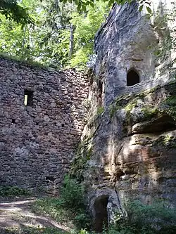 Hrad byl postaven vysekáním místností do pískovcového 13 metrů vysokého sloupu, který stojí na 20 metrů vysokém zalesněném pahorku. Místnosti vytvořily celkem tři patra.[5] Na skále stával hradní palác o dvou křídlech. Dnes jsou patrné zbytky zdiva zmíněného paláce a řada vytesaných místností a průchodů. Schody byly vedeny po stěnách a bylo zde několik dřevěných pavlačí, které byly časem odstraněny. Část hradu sloužila jako skladiště zbraní, oblečení a potravin.[6]