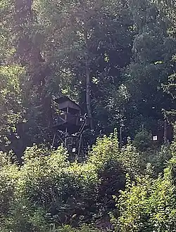 Replika věže a oplocení v bývalém pracovním táboru Svornost