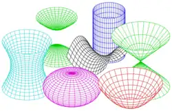 Kvadrika v -rozměrném euklidovském prostoru je množina kořenů kvadratického polynomu v neznámých. Každou kvadriku lze definovat pomocí nenulové symetrické matice , vektoru a absolutního členu jako množinu bodů