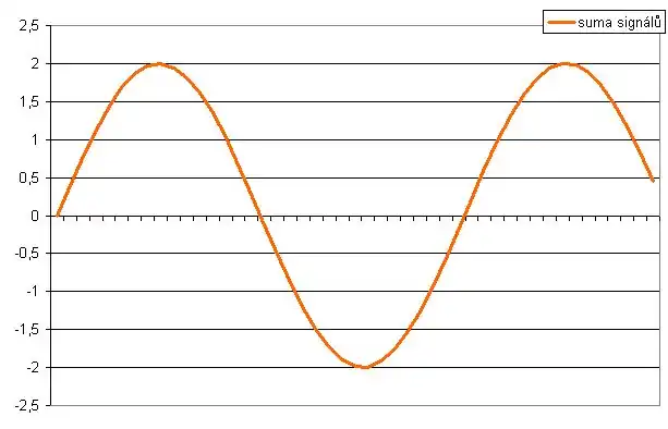 Posledním krokem je jednoduché sečtení přijatého signálu HOT a invertovaného signálu COLD. To znamená, že v čase, kdy první signál má hodnotu +1,02 a druhý +0,98, jejich součet bude +2,00. Výsledný signál bude tedy v každém čase dvojnásobkem původního signálu, který není ovlivněn rušením parazitního signálu, který ovlivnil signály v symetrickém vedení.