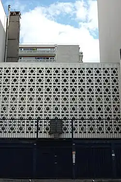 Do synagogy se vstupuje přes malý dvorek, který je od ulice oddělen vysokou mříží, a kde jsou pamětní desky na památku židovských dobrovolníků, kteří zemřeli v boji za Francii během dvou světových válek, a těch, kteří se stali obětí deportací.
