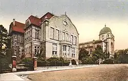 Rozestavěná moderní synagoga od architekta Karla Königa v eklektickém stylu ve Sládkově ulici z let 1867–1869 byla prodána a roku 1875 dostavěna jako městská tělocvična. V roce 1945 byla při náletu zničena.[2]