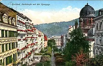 ![]() Karlovarská synagoga 1877–1938, celkový pohled | |