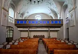 V interiéru se dochovala klenba se štukovou dekorací, je zde umístěn barokní aron ha-kodeš asi z roku 1696 a pamětní deska obětem první světové války.[2]