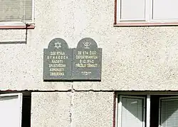 ![]() Železný památník na místě zaniklé synagogy (2019) | |