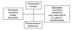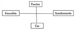 C. G. Jung vytvořil schéma, kde proti kauzalitě uvedl synchronicitu vedle prostoru a času.[13]