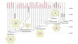 - ↑ Zuntini et al. Extended Data Fig. 1: Tanglegram at ordinal level between this work (left) and the APG IV schematic tree (right)