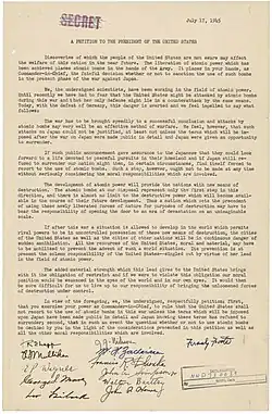 V tomto článku byl použit překlad textu z článku Szilárd petition na anglické Wikipedii.
