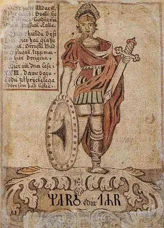 - ↑ a b STARÝ, Jiří. Pojem boha u starých Germánů. In: CHLUP, Radek. Bůh a bohové : pojetí božství v náboženských tradicích světa. Praha: DharmaGaia, 2004. ISBN 80-86685-42-X. S. 163.